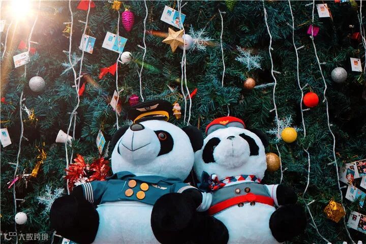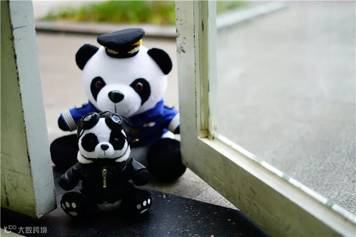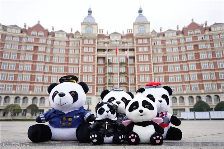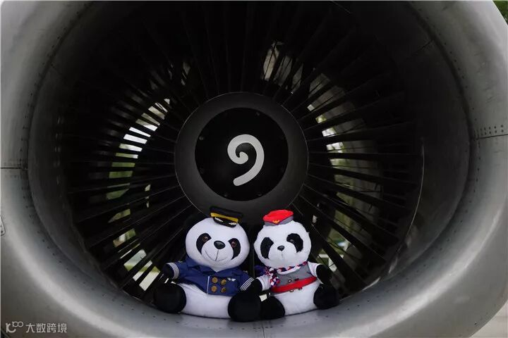 “熊猫机长”和“熊猫空姐”手牵手坐在大白前