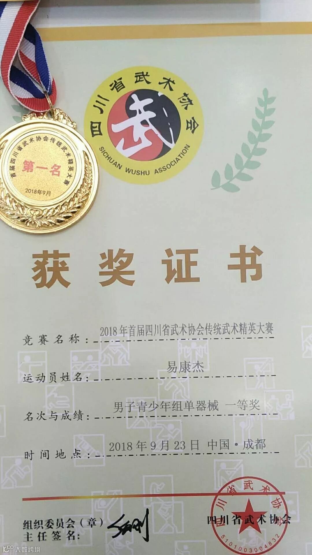 近日,由四川省武术协会主办的“2018首届四川省武术协会传统武术精英大赛”在成都市隆重举行,来自全省61支代表队共614人参赛。经过2天激烈的角逐,西航学子易康杰成功斩获青少年组单器械一等奖。