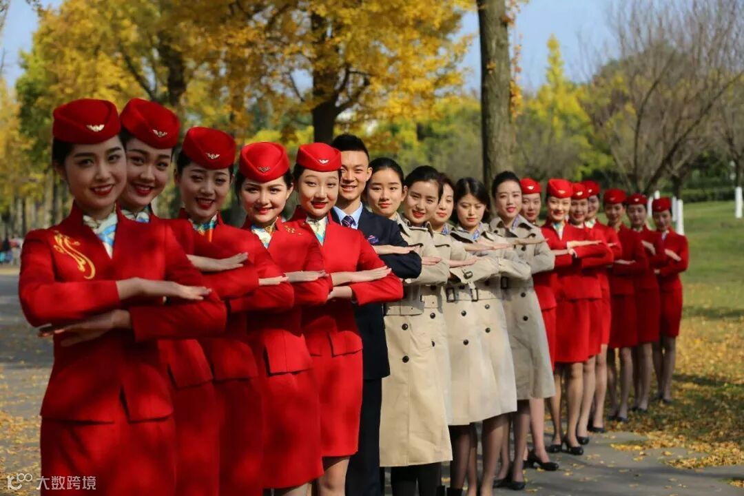 中国民航改革开放四十年以来,我国已有大型飞机运输航空公司52家,通用航空公司367家,在运行的运输飞机3551架,飞行人员增长近15倍。11月22日,在这个银杏满地的季节,成航空乘绅士淑女会成员以及教师代表身着统一服装,用最走心的手势,舞动双手,唱响“中国有我,我有中国”,向祖国表白,向民航致敬!