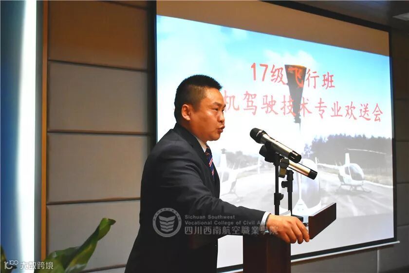 欢送会上,直升机驾驶技术专业、定翼机驾驶技术专业学子们和学院老师们欢聚一堂,共同见证自己学业生涯中的重要时刻。欢送仪式由班级辅导员周伟主持。