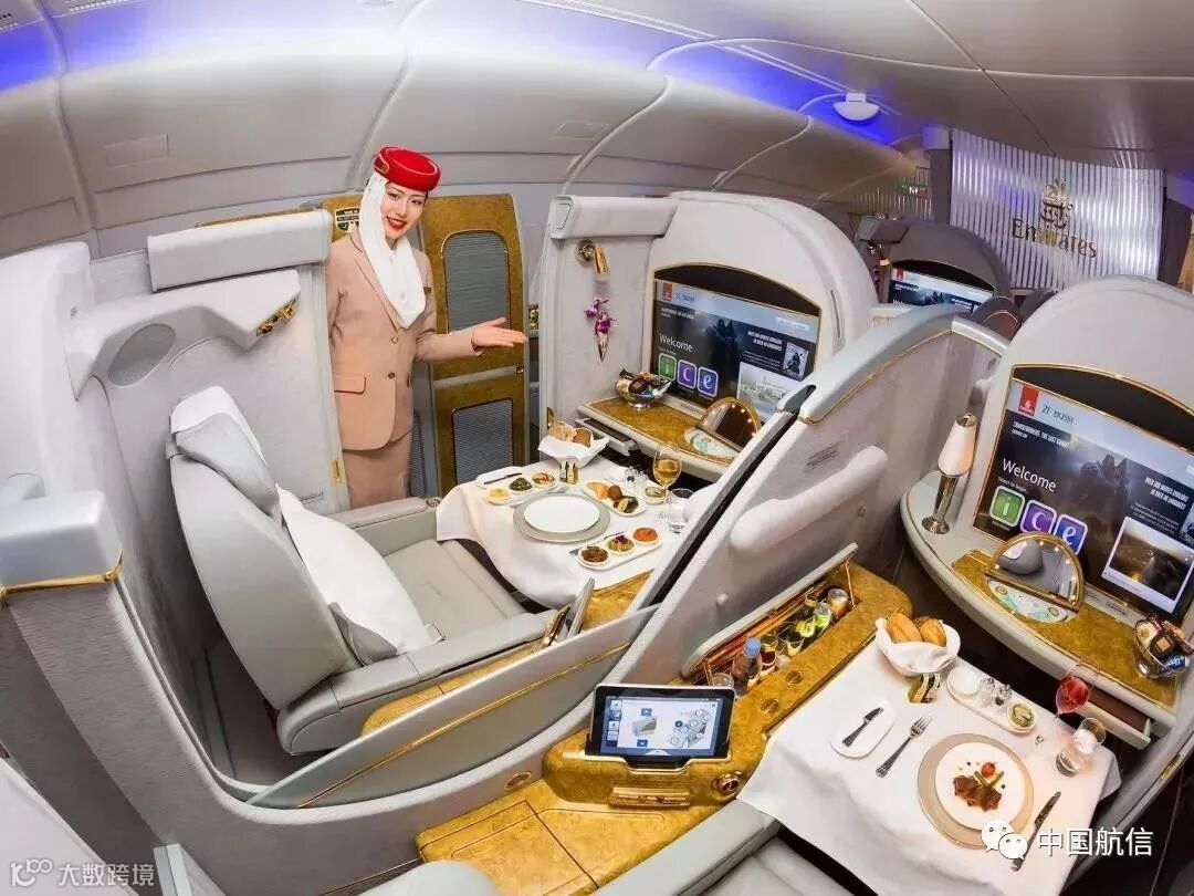 在头等舱私人套间中有双人床,甚至可享受淋浴服务。商务舱,只需轻触按钮即可将座椅放平。各个机舱均提供电话、短信和电子邮件服务。
