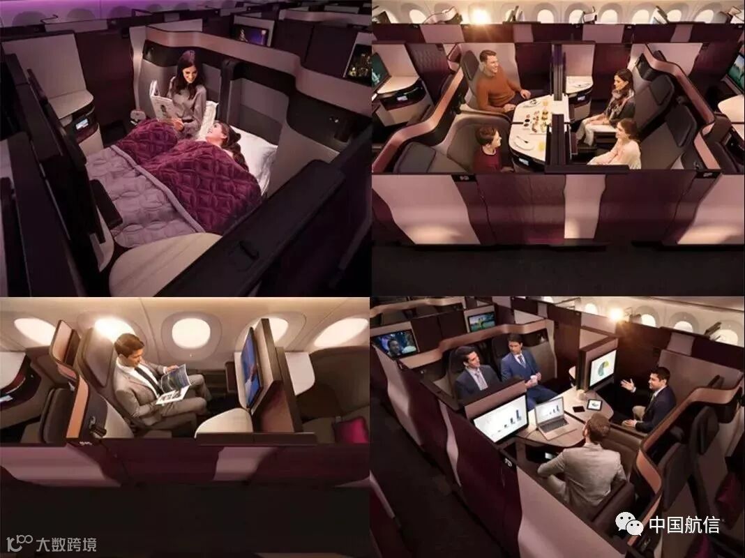 今年5月中起,卡塔尔上海-多哈航线全新的Qsuite空中私人套房,还推出了业界首个4座合并及双人床配置的商务舱座椅。