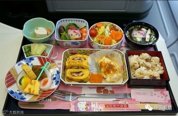Hello Kitty主题的飞机餐会根据时令变化来调整配菜,从而菜色丰富、营养均衡的程度。