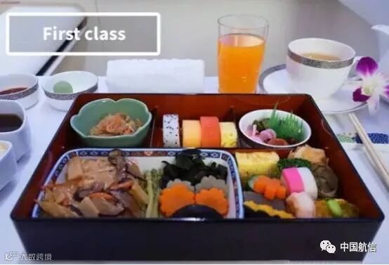 而它的餐食素有“最优秀机上便餐”的美誉,餐品的制作和摆放都充满的日式的讲究。每月推出最新鲜的时令季节菜,很讨“喜新厌旧”的乘客欢心。他们的饮料有提供日本抹茶,比甜腻腻的饮料喝的舒服。