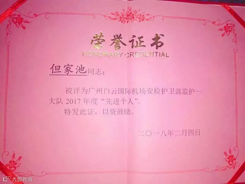 在被评为“广州白云国际机场安检护卫部监护一大队2017年度先进个人”时,但家池曾表示,一切都要归功于日常工作中的“春风服务”、“微笑服务”。他说,“上岗时不带私人情绪,时刻做到公司倡导的‘春风服务’,这便是最好的状态。”
