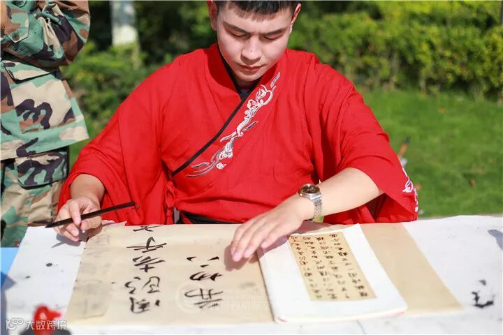 其实没想好去什么社团就在瞎逛,被好看的汉服小姐姐吸引到书法社前面,被这些好看的字惊到了。有点心动hhhh~”