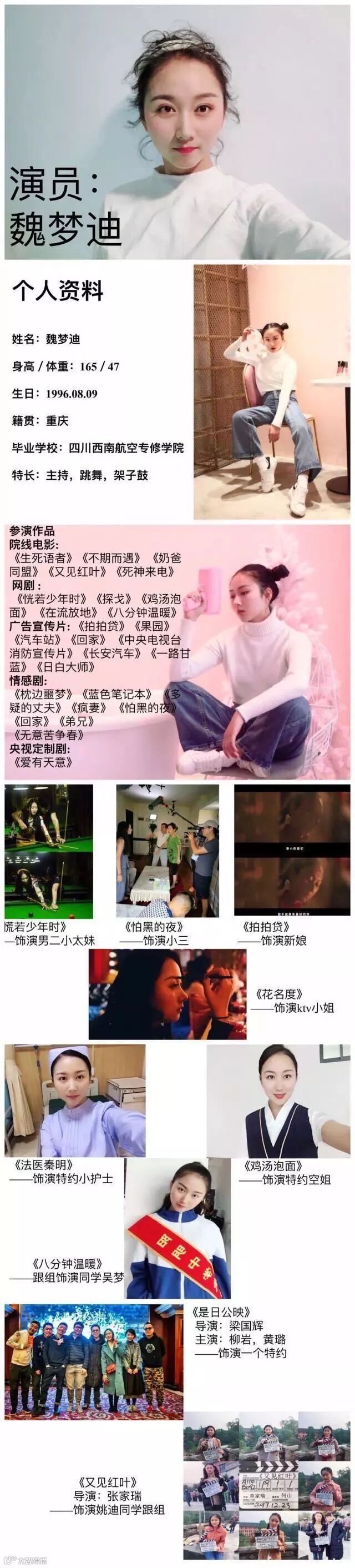 误打误撞,魏梦迪由“好看的人肉背景”开启了自己的演艺生涯。“由于没有学过表演,一切都要从头开始。有时连续拍摄几个通宵,只拿到一点点薪水,那个时候想过放弃。”