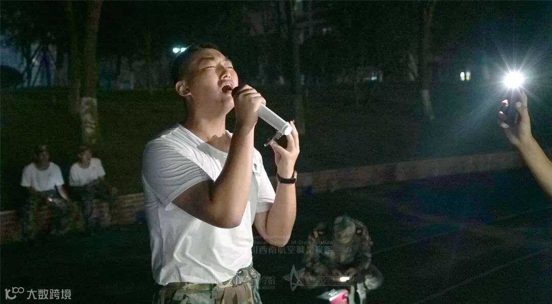 运动场一侧的旗台上,一场荧光闪耀,让人心潮澎湃的“演唱会”正在奏响。挥舞着的手机闪光灯仿佛化作了一片“灯海”,和美丽的校园相得益彰。平日里严肃英俊威武声色俱厉的教官们原来是如此能歌善舞,多才多艺。