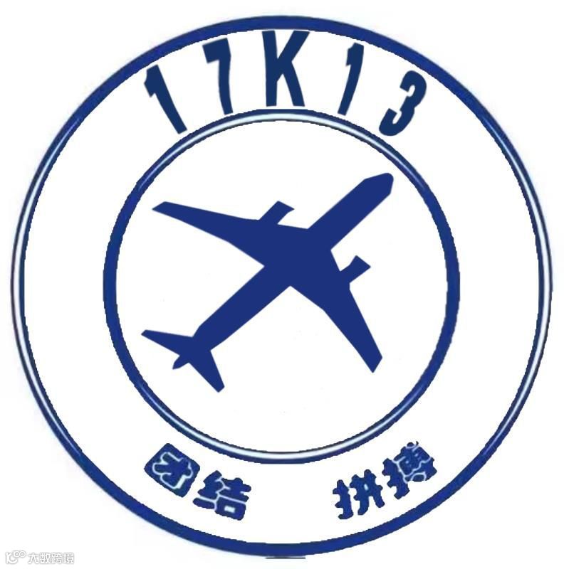 设计理念:以最为普通的方式体现不平凡的队徽 。飞机代表事业,也是同学们飞上蓝天的梦想,17k13是他们的代名词,最好的一切皆奉献于民航事业,同学们将更加努力奋斗。