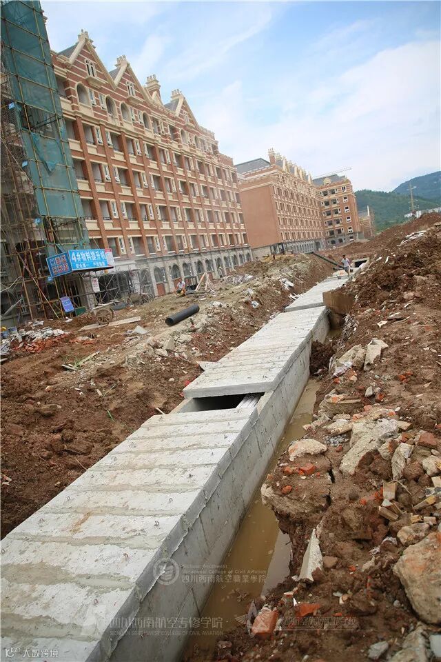 综合管沟也叫地下管线共同沟,是指可以容纳两种或两种以上市政公用设施管线(包括给水、中水、热力、电力、电信等)的一种集约化、集成化的市政公用基础设施。管沟造价不菲,常常用于配备专用检修口、吊装口、排水设施、消防设施、通风设施和检测监控系统等,其可大大增加建筑的使用时间,将为学院成为百年名校提供保障。