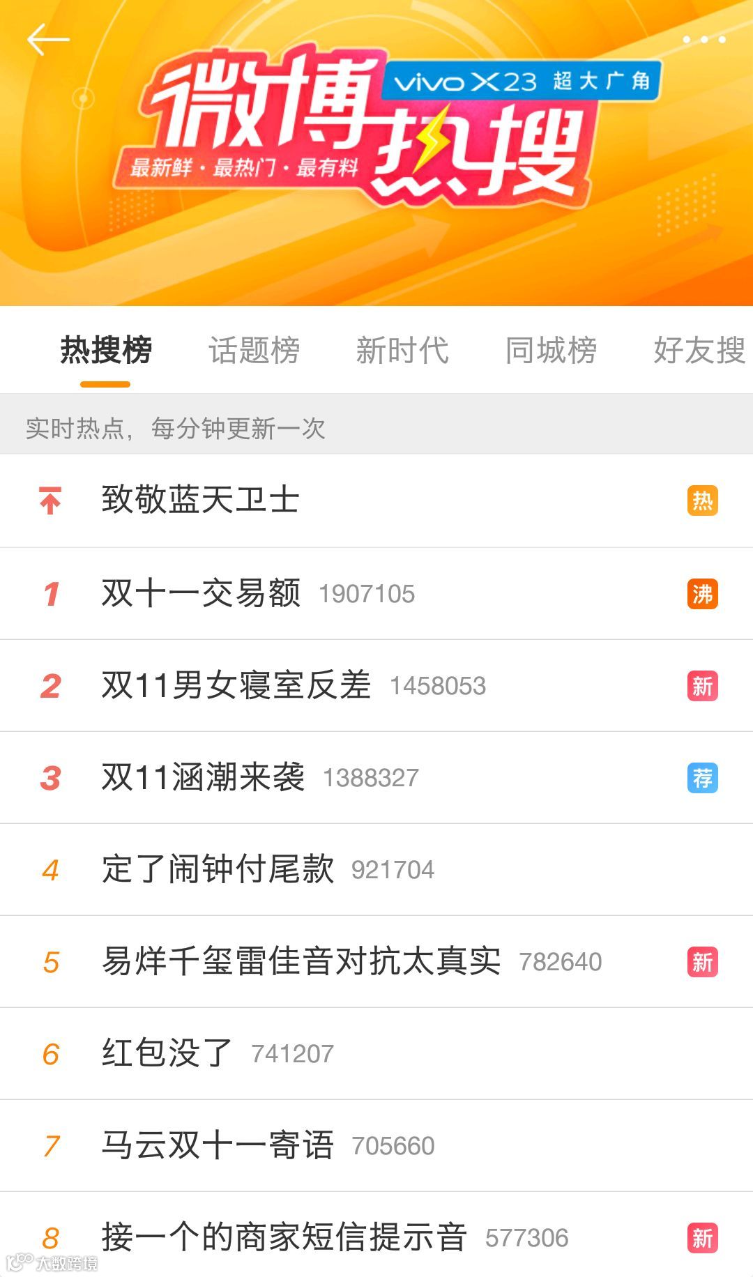 微博热搜瞬间被双11关键词霸屏