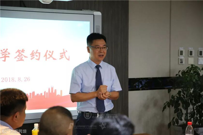 在欢送会前,首先进行了签约仪式。四川泛美教育投资集团董事、副总裁、四川教育事业部常务副总裁、四川西南航空专修学院院长曾远志先生,四川泛美教育投资集团董事、副总裁李中东先生深情致辞,向孩子们传达了母校的祝福,“无论你们身在哪里,西航都会为你们保驾护航!也希望你们再接再厉,将我们西航人的风范带到国外去!”