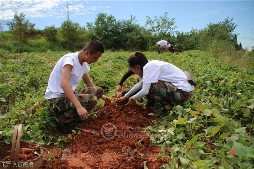 分为四个小组的同学们在老师的带领下分别来到不同的村落体验不一样的丰收景象。掰玉米、摘南瓜、挖花生红薯……蓝天白云,映衬着大家努力的身影。