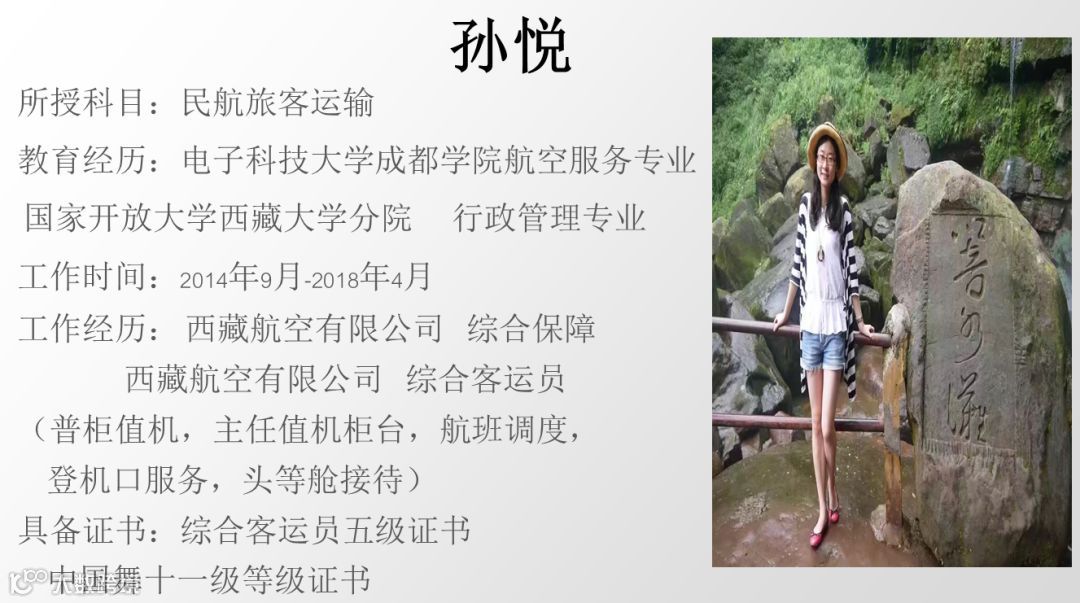 毕业于电子科大“航空服务”及“行政管理”专业、本科,曾就职于西藏航空有限公司拉萨贡嘎国际机场