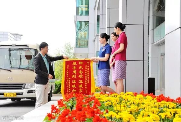 “阳光南航,温暖客舱;服务周到,温暖如家。”16个黄色楷体字,在红色锦旗的背景下显得格外醒目。