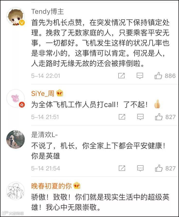 无数网友为英雄机长点赞,为英雄机组鼓掌!