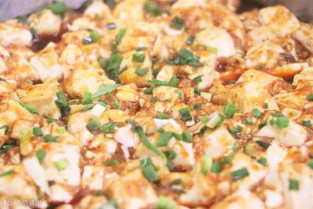 豆腐嫩白而有光泽,表面盖着一层红色的辣油,卖相极佳之余,还有香气扑鼻的花椒味,让人胃口大增。