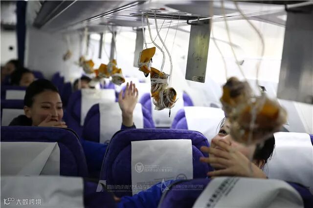 紧接着,机舱内的氧气面罩全部脱落,乘客迅速拉起氧气面罩罩住面部。
