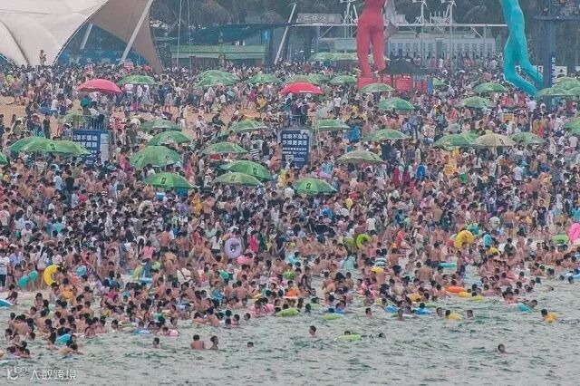 挤到绝望的大海沙滩阳光浴