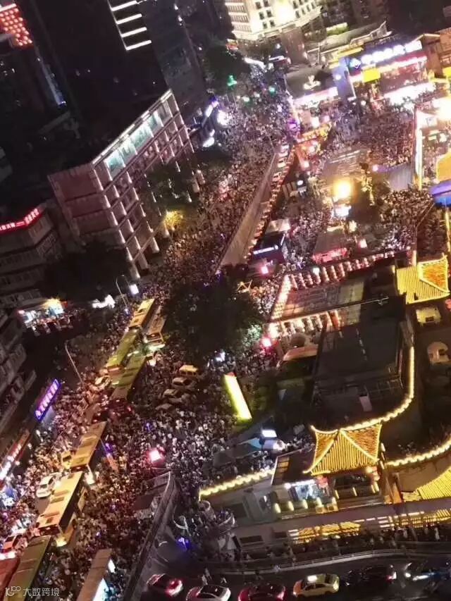 挤到手机没信号的洪崖洞