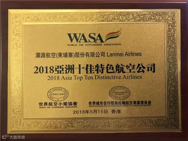 澜湄航空荣获“2018亚洲十佳特色航空公司”的称号