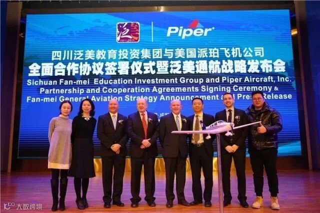 美国派珀飞机公司是美国第二大通航公司,是全球领先的通航制造商,同时也是世界通用航空制造商协会(GAMA)的成员,占有国际飞行培训市场的最大份额。派珀创始人William Piper先生被誉为“航空界的福特”,他说倡导的理念是让每个人都可以开飞机,与泛美投资教育集团的魏全斌董事长所提倡的“泛美通航 自由飞翔“的理念不谋而合。随着双方合作的不断深入,泛美通航产业链将会进一步壮大,泛美集团将树立中国通航产业新标杆,引领通航产业发展。