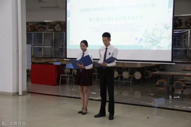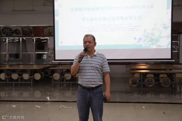 成都航空旅游职业学校副校长陈平先生为校级优秀部门颁奖。