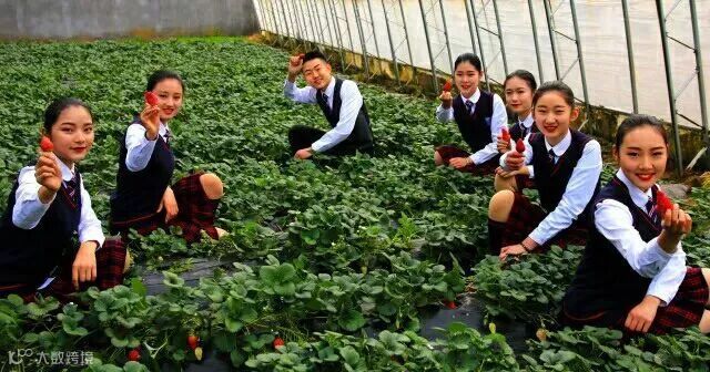 3月8日,青岛北方航空职业学校的学生们利用课间休息时间,到学校的“梦想花园”采摘新鲜的草莓给女神们送去惊喜。