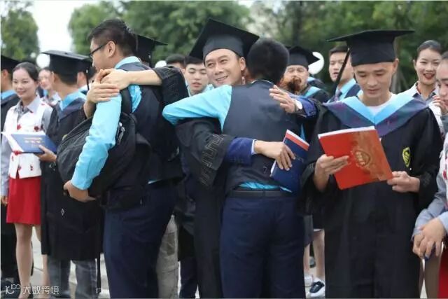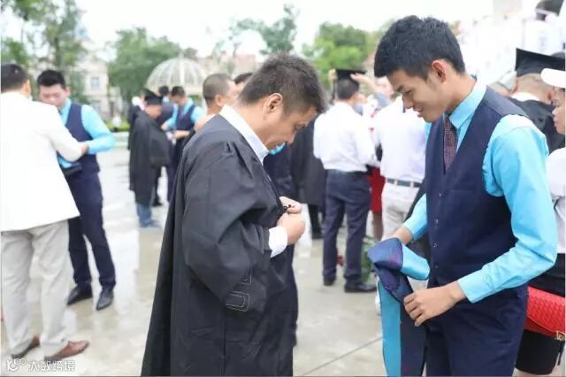 小心翼翼地为父亲穿上了学士服,细心地为父亲整理衣襟,也和父亲来了一个大大的拥抱。平日里为生活和家庭四处奔波操劳的父亲们,一改往日的严肃,在儿女们面前露出了孩童般的笑容。