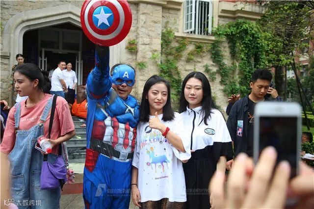 神操作来了!西航校园惊现“超级英雄”!美国队长、钢铁侠、蜘蛛侠、绯红女巫等漫威、DC动漫电影中的经典形象纷纷现身,引起现场同学们围观。