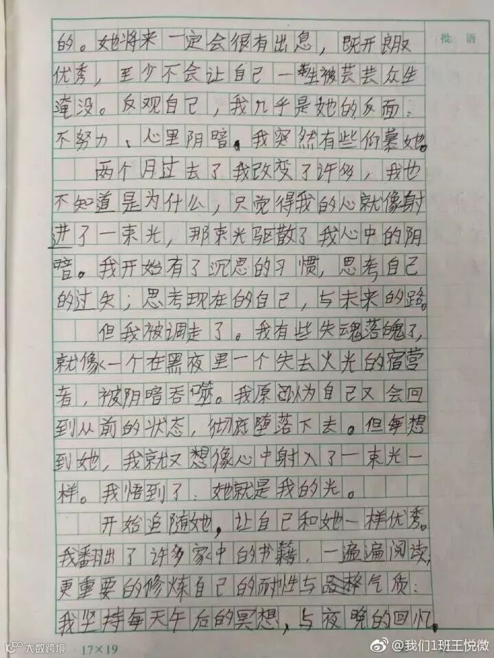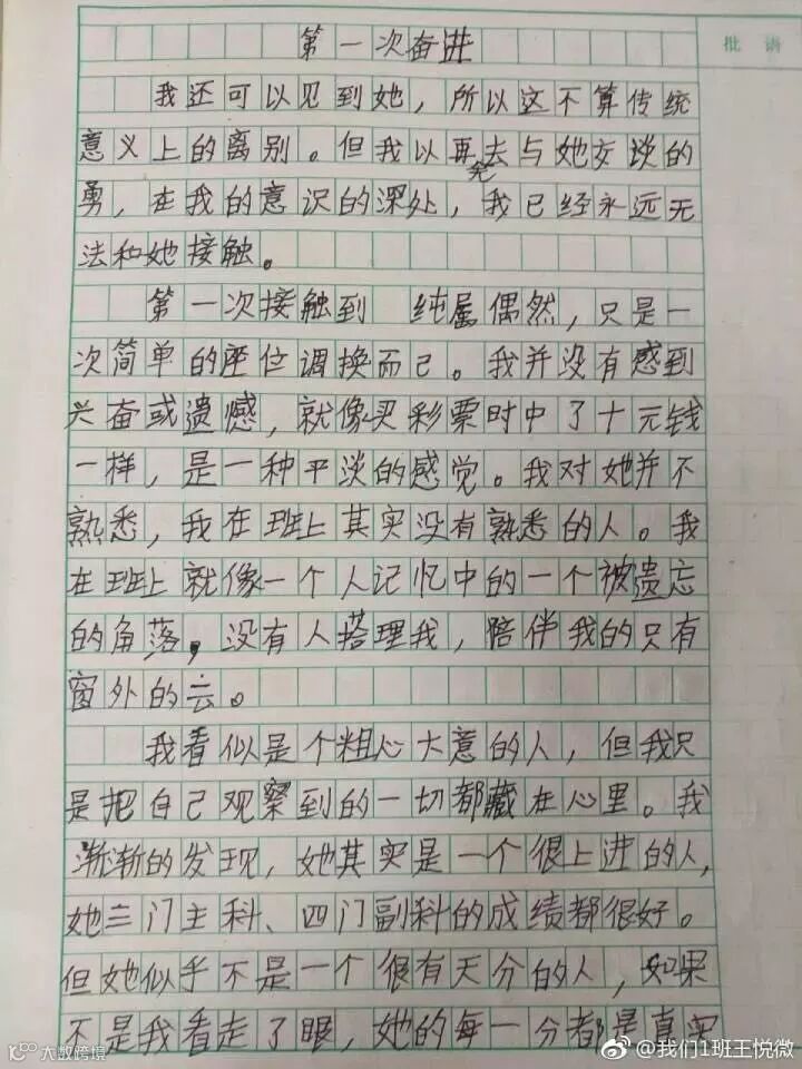 老师在微博晒出这篇作文后,立即引爆热点。