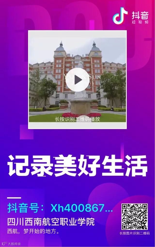 1、需关注四川西南航空职业学院抖音账号xh4008679992 或搜索“四川西南航空职业学院”,请认准蓝V标识;
