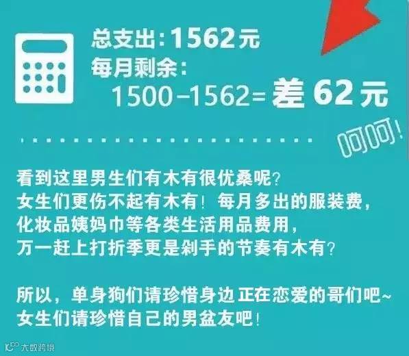 其次,你单身,你是宅男,吃饭只吃食堂,很少买水果,除了一些日用品之外,你都不买什么,那么1500肯定够用。你是女生的话,1500来说,你不谈恋爱,不过谈恋爱也是男的掏钱的多,平时逛逛某宝啥的,买一些化妆品。衣服,零食,肯定是够用的。