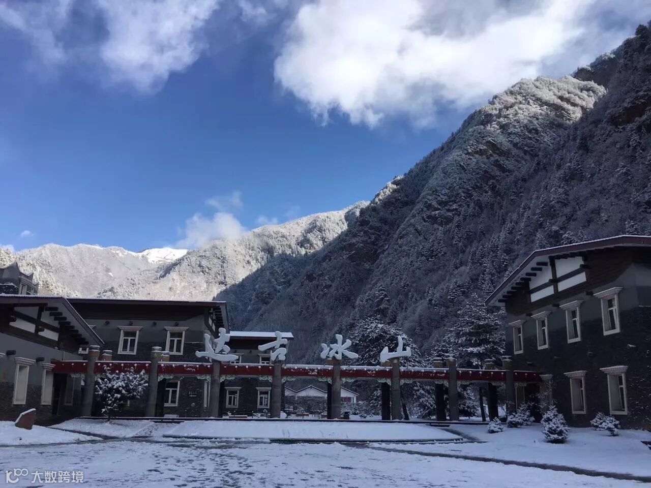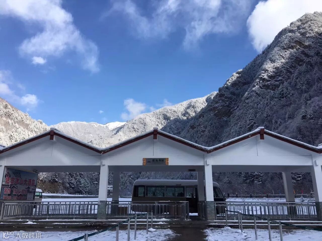 达古冰山的大雪壮观到惊艳,仅仅在景区门口雪都这么厚,不愧是世界级的冰川。