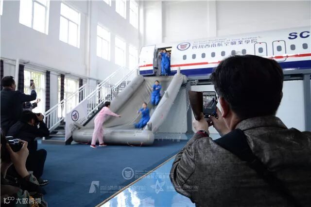 在领略了美丽的校园风光之后,海外华文媒体代表在西航实训中心的模拟客舱内体验了包括行李架着火、飞机水上迫降等飞行过程中可能遇到的状况。