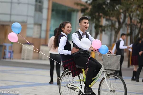 看到这样浪漫又不失小清新的场景,西航君不禁感叹:“00后”的男生真会玩!身穿小礼服的男生们,化身单车骑士,集体等在女生寝室门口,分分钟都是剧情里等待女主出现的男主角呀!