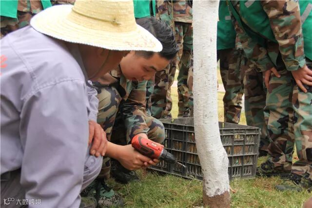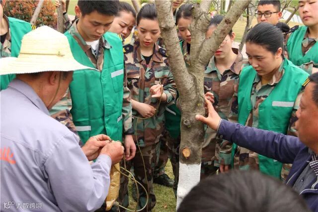 西航学子在老师和园丁的带领下,成功种植了一颗桃树。挖坑、埋土、压土、挂营养液,一气呵成。