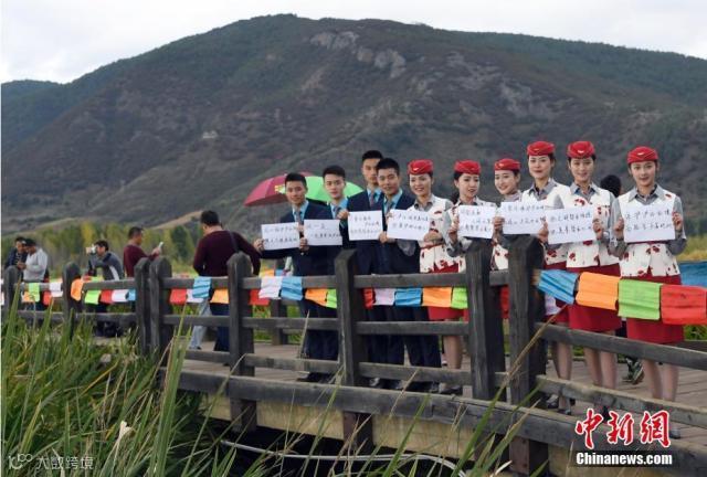 10月15日,西航的一群准空姐空少作为志愿者现身四川盐源泸沽湖景区,身体力行倡导生态环保。学生们走上当地著名的“走婚桥”,向游客们宣传环保知识。