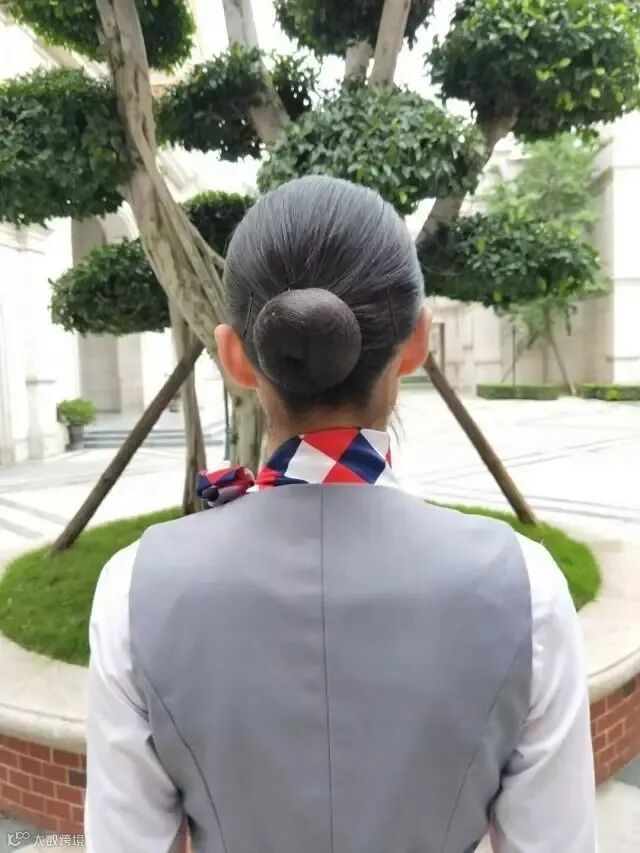 盘发:发髻底部边缘不得低于耳根处;不得有散、碎发