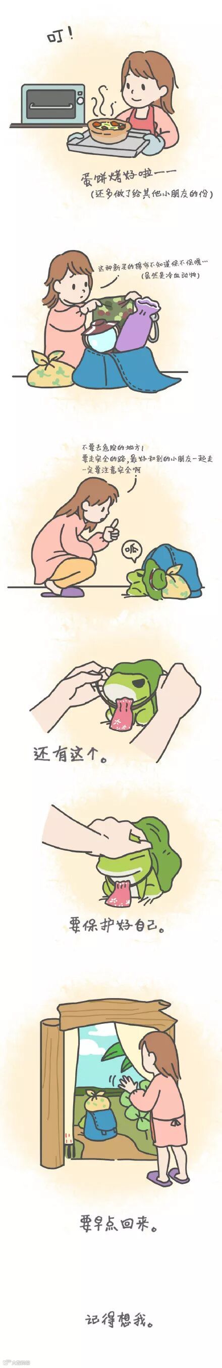 你会不由自主地去关注他,去看看蛙儿子在做什么,出去了没有?回来了没有?也就突然理解了父母“莫名其妙”的担心和关心。