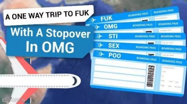 还有些机场代码很有意思。圣彼得-克利尔沃特国际机场的代码是PIE(意为馅饼,机场营销团队还利用这个好玩的代码创建了一个名为fly2pie.com的网站以吸引游客。),还有LOL(内华达德比·菲尔德机场,还有大声笑的含义);OMG(纳米比亚欧米茄机场);EEK(阿拉斯加一个小城镇)。俄罗斯彼尔姆机场的代码是PEE(有小便的含义),巴西Poco De Caldas 机场的代码是POO(有大便的含义)。路易斯安娜州巴克斯达尔空军基地的代码是BAD(意为差、糟糕)。爱荷华州苏城门户机场的代码是SUX(意为差劲、糟透了)。