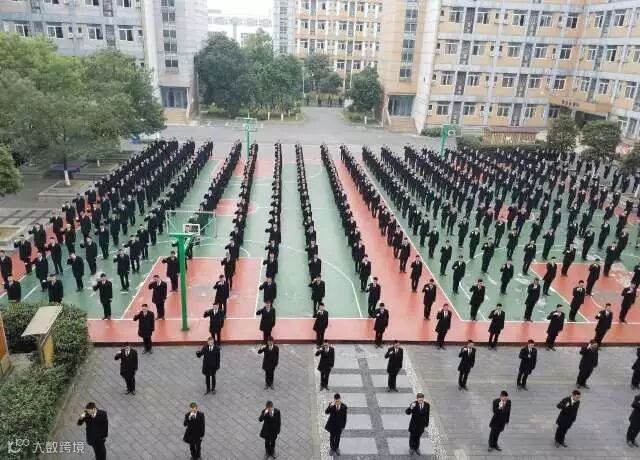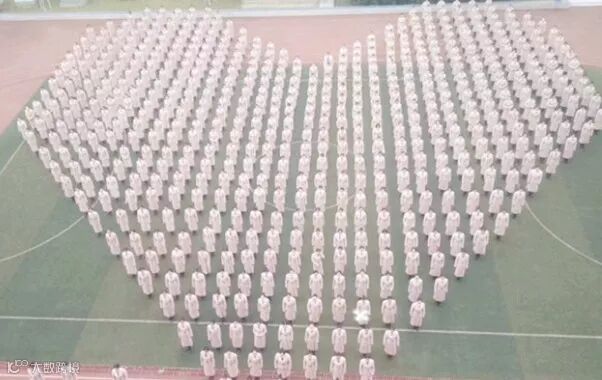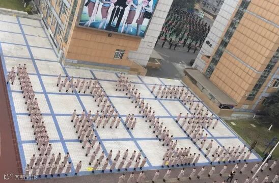 运动场上,学生们排成心形形状,用千人手语表演,开启了 “双12”的正确打开方式。