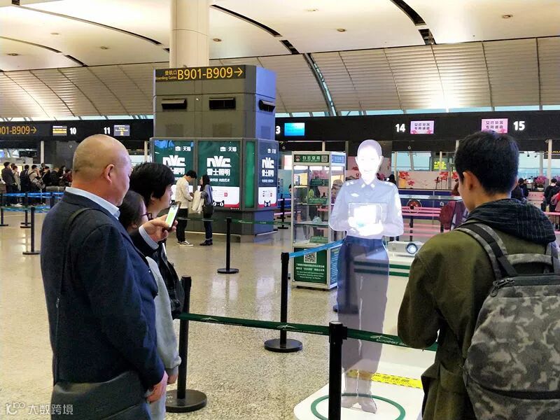 据介绍,这是白云机场首次投入使用的3D全息成像安检宣导系统。它采用了当下流行的科技元素,利用全息成像原理,声光结合,彷如“真人”引导,更区别以往静态图文、声源广播和专员引导等传统的宣传提醒方式,具有4k成像,影像清晰,中英双语等特点。这几位个性化的“员工”能够给旅客提供个性化的服务,让旅客候检进入安检通道前,更加直观、生动地了解到违禁物品知识和安检乘机法规,辅助提高安检效率、顺畅旅客出行。
