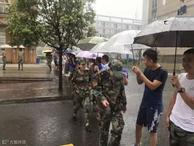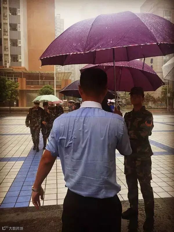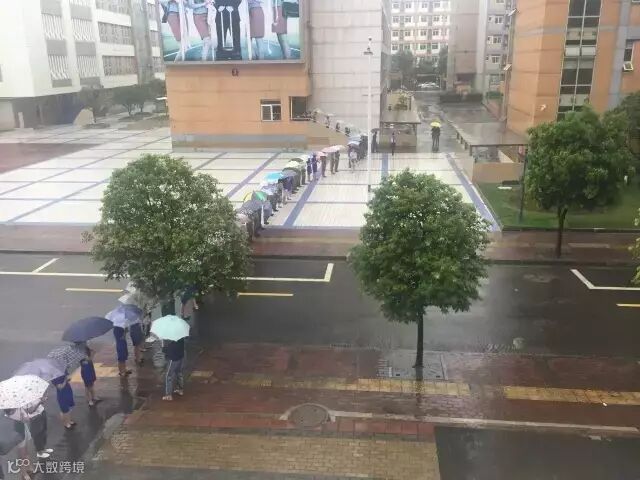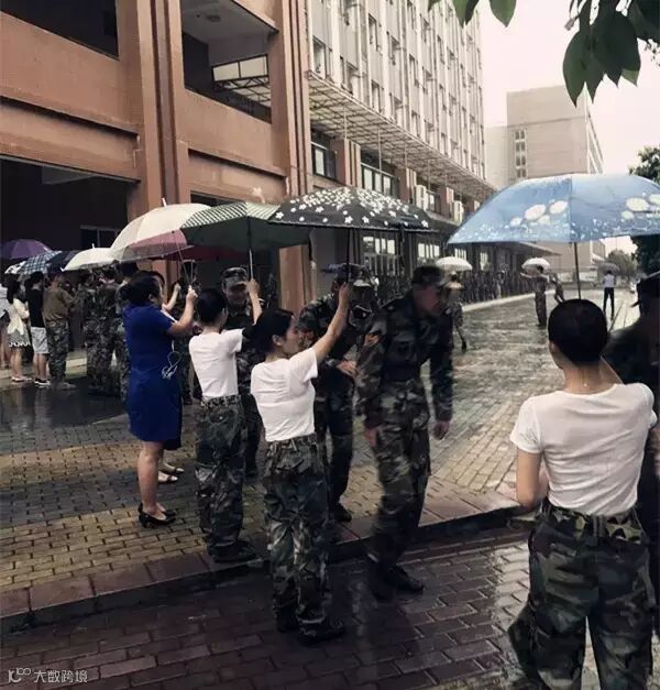 全体空乘部的老师们一人一把雨伞接力护送学生回寝室。
