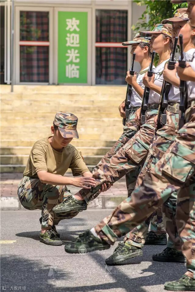 烈日下 实习教官纠正同学们的姿势