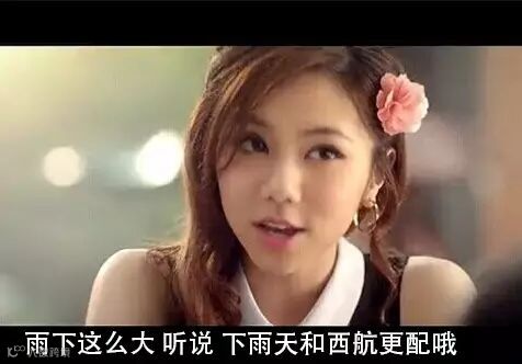 “雨下这么大。听说,下雨天和西航更配哦。”
