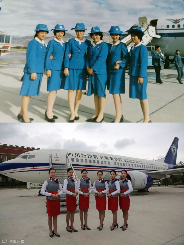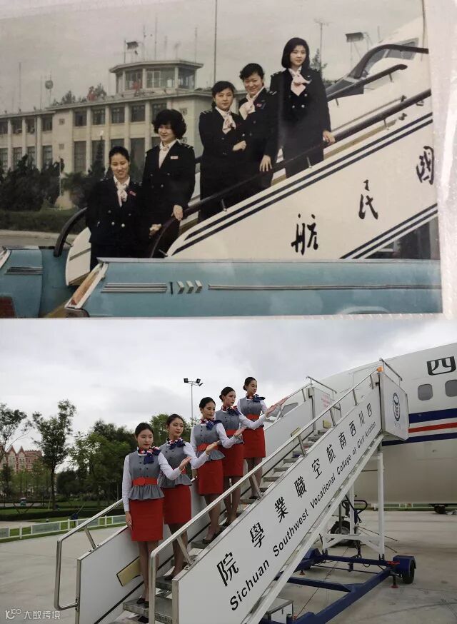相同的场景、同样的动作、一样的美丽优雅……跨越40年的时间,西航准空姐们通过这种方式向前辈们致敬。厉害了,我的“95后”准空姐们。