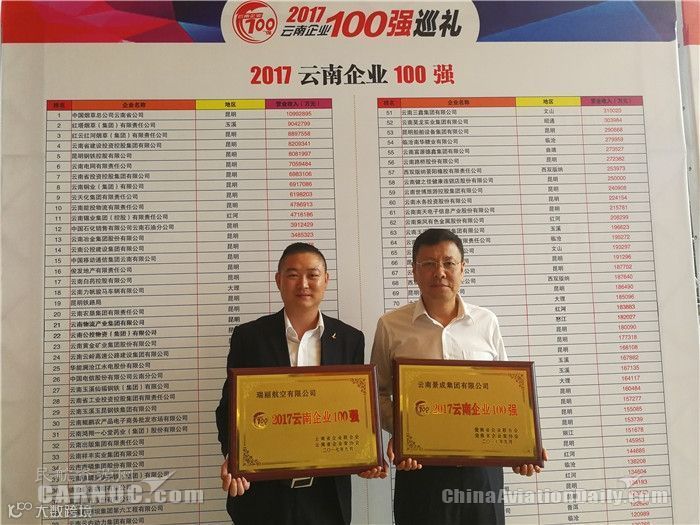 民航资源网2017年9月29日消息:记者从云南首家本土航空瑞丽航空获悉,在9月29日昆明举行的2017云南企业100强发布会暨大企业高峰论坛上,瑞丽航空及其母公司云南景成集团双双再次入选100强。