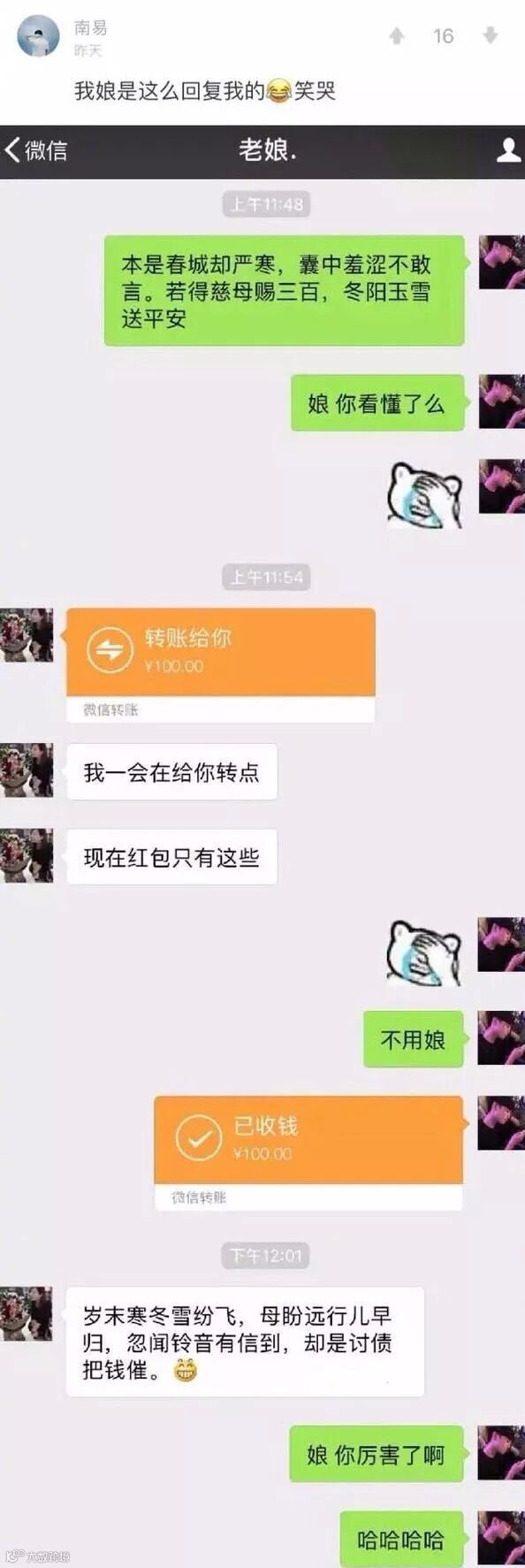 如何高雅的向父母讨要生活费?你们感受下......