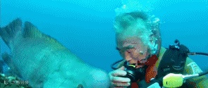 此后博幸每一次潜水,顺子都会跟在他身边。一人一鱼之间还有了属于自己的暗号——当博幸拿铁锤敲打海底废弃的金属柱时,顺子就会摇头摆尾的游过来,绕着他玩闹。